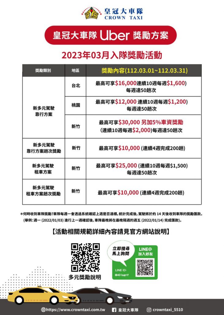【114年05月】皇冠大車隊-台北/桃園/新竹多元計程車開通獎勵_車隊加碼